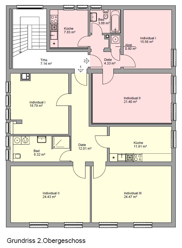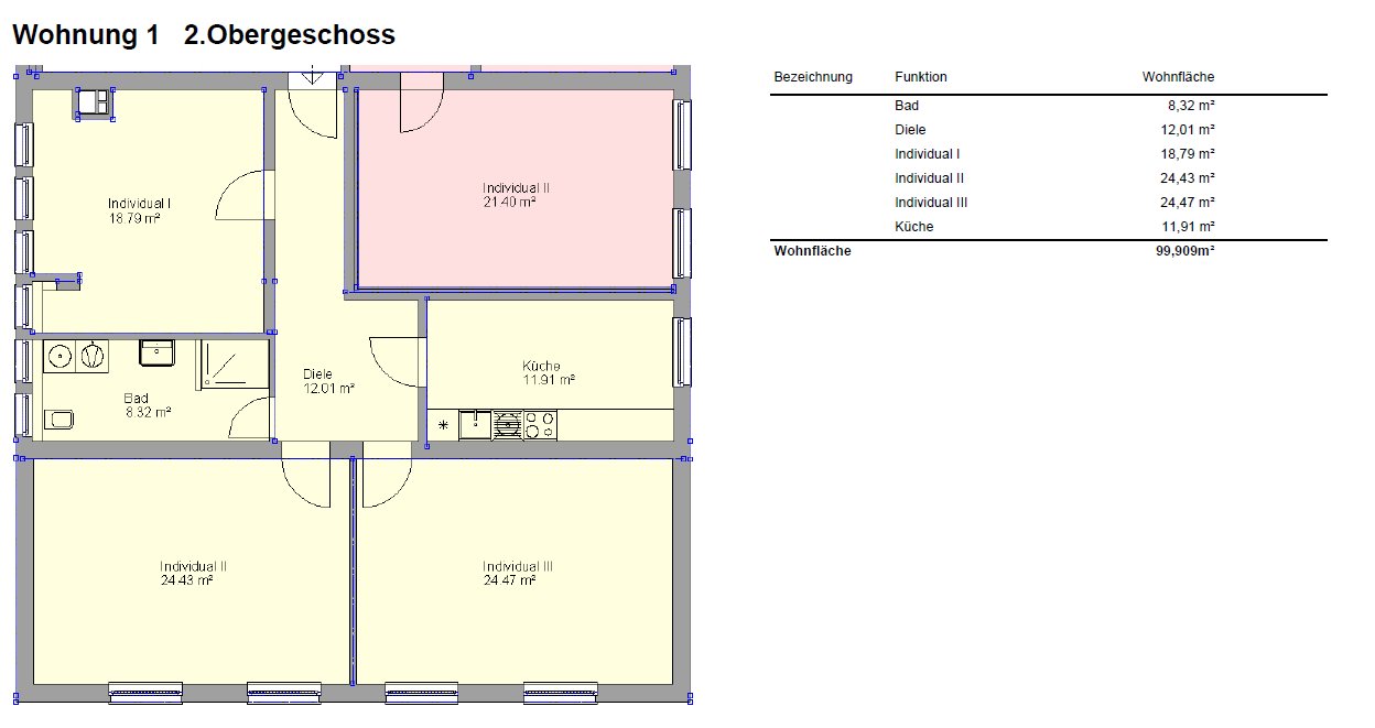 Die Wohnung verfügt über ca. 99,90 m² (im Grundriss gelb hinterlegt) aufgeteilt in 3 Zimmer, Küche und Bad und liegt zentral in der Stadtmitte Gießens im zweiten Obergeschoss eines Bürogebäudes.
